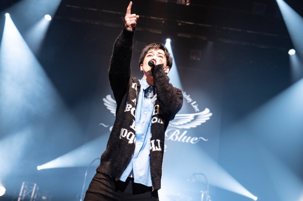 「<KOJI Memorial & Birthday Live 2026 〜Eternal Blue〜>にようこそ! 僕たちがALICE IN MENSWEARです。ちょうど7年前、新宿ReNYからスタートしました。しばらく活動休止を余儀なくされましたが、7年の時を経て、みんなと一緒に復活できることを光栄に思います。今日はみんなのそれぞれの想いの丈をぶつけて、その本能に素直になってKOJIのバースディを一緒に祝おうではありませんか!」──michi.