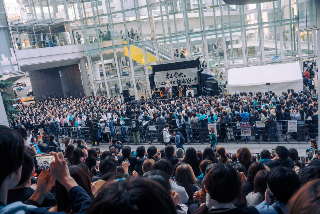 【レポート】ねぐせ。渋谷フリーライブに桁違いの賑わいとアコースティックならではの素顔の音「横浜アリーナで待ってます」