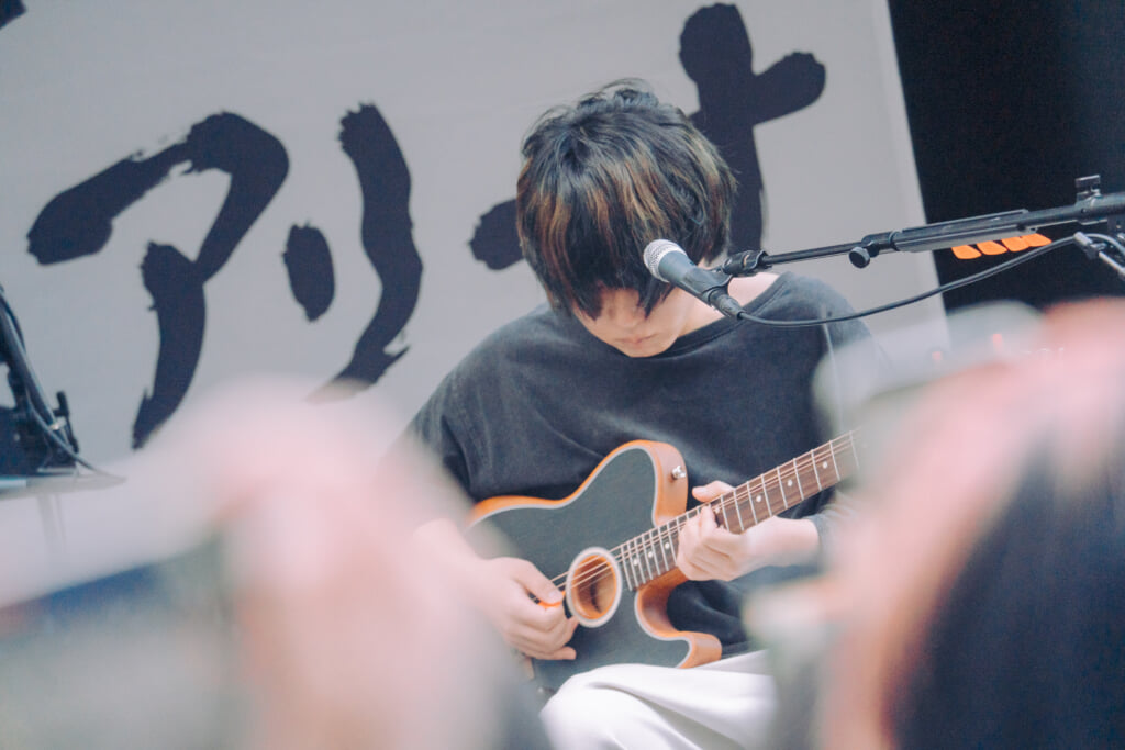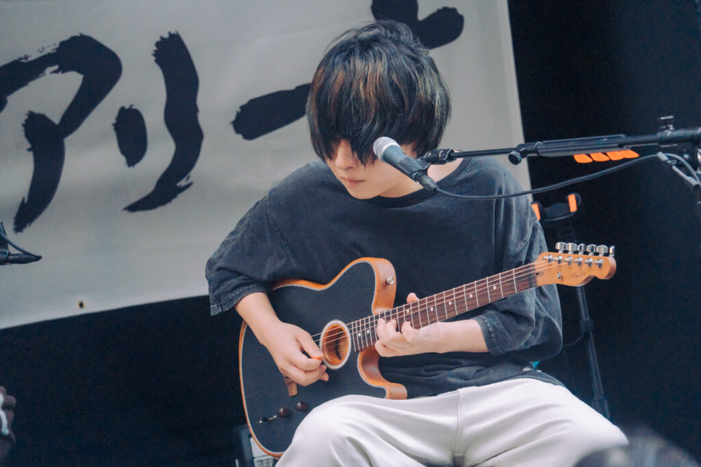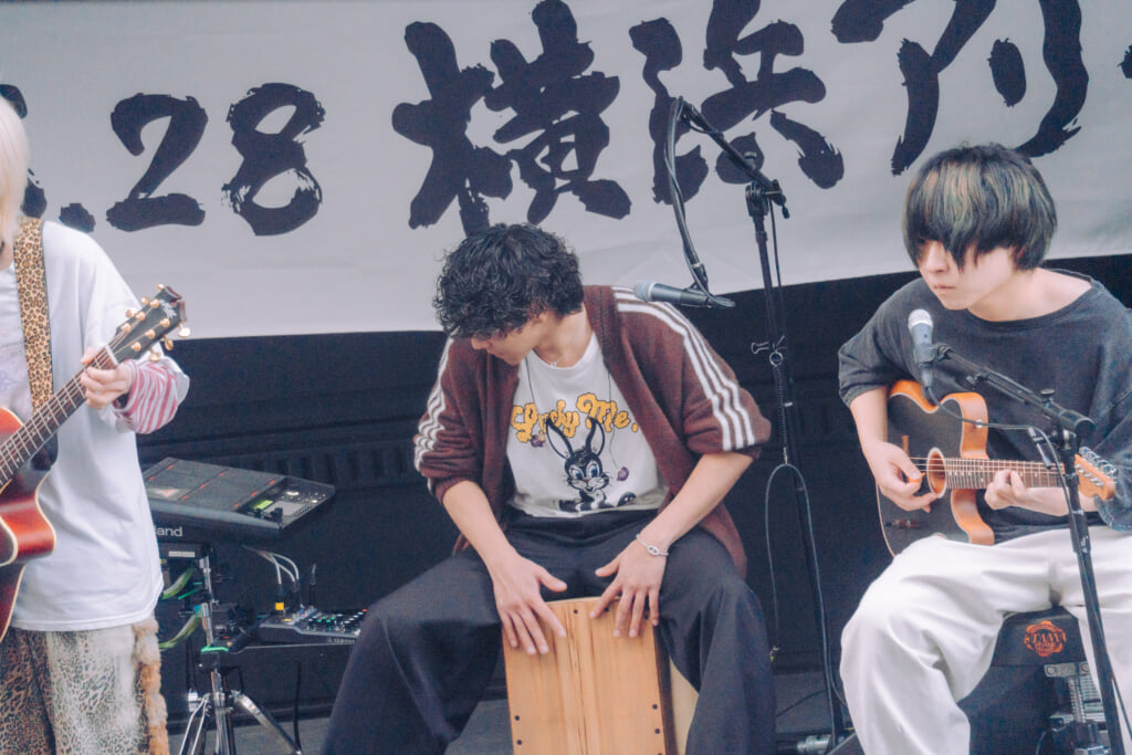 続く2曲目は、「一生僕ら恋をしよう」だ。ギターを置いたりょたちのボーカルはニュアンスも繊細、ファルセットも駆使しながら永遠に続く愛を歌う。終盤の“一生僕ら恋をしよう”の部分では両手を大きく広げて呼びかけるように歌い上げるなど、通りすがりの人たちを巻き込むようなポジティヴなパフォーマンスが光った。