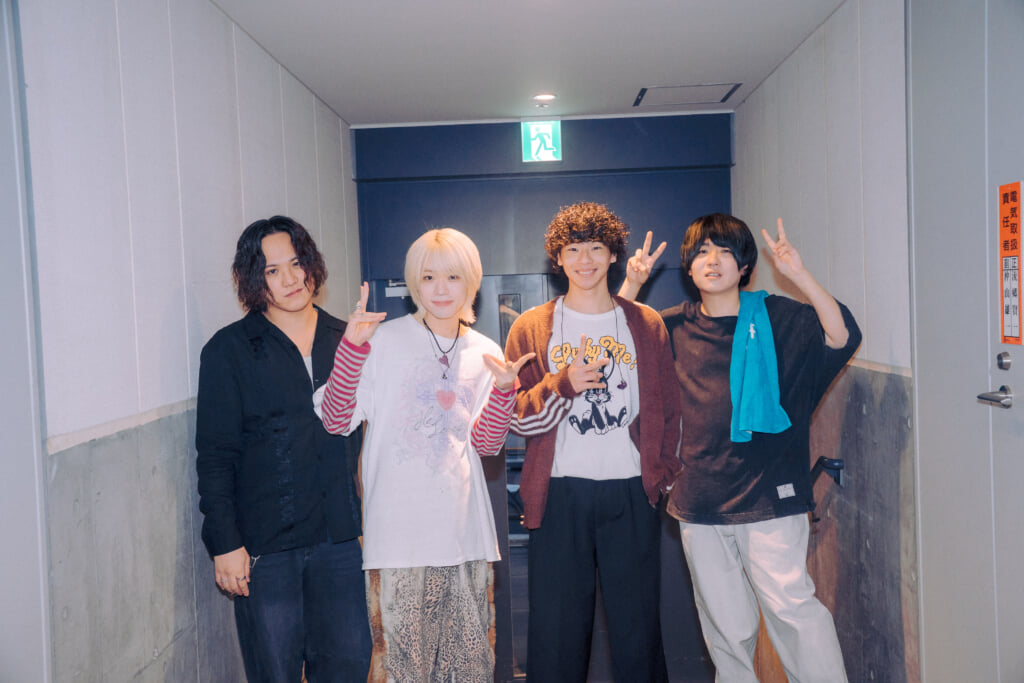 という第一声に続いて、まずは「グッドな音楽を」を鳴らした。ステージ上にドラムがセットされていなかったことから気づいていたファンも多かっただろうが、この日はなんと、自身初のアコースティック編成。しょうとはエレキベースを手にしていたものの、りょたちとなおやはエレアコを奏で、なおとはカホンを叩くなど、いつもとはひと味異なる温かさ溢れるアンサンブルを響かせた。結果、人懐っこさと絶妙な甘さが絶妙にブレンドされた歌声によりフォーカスされることとなったサウンドに、ぐっと惹き込まれてしまう。