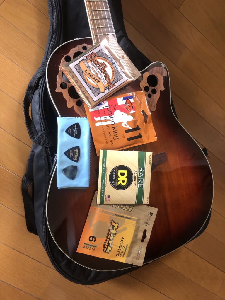 あとは弦の選択が重要!!初めについていたおそらく12のフォスファーが思ったより良い感じだったのですが、とりあえず持ってるブロンズに張り替え。そして11と10と徐々に細い弦をお試しした結果、11のフォスファーが一番良いとの結論に。で、手に入る種類を片っ端から購入(ダダリオ、マーチンなどは除く)。あまり認識なかったMark stringsなどあり、これからのお試し期間が楽しみです