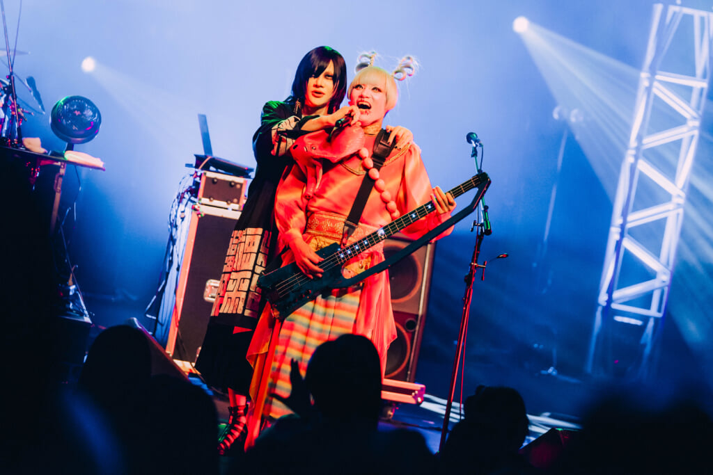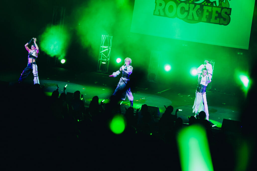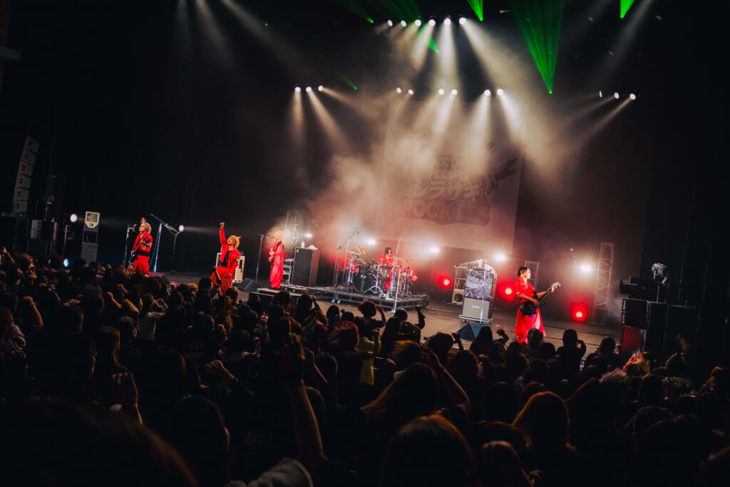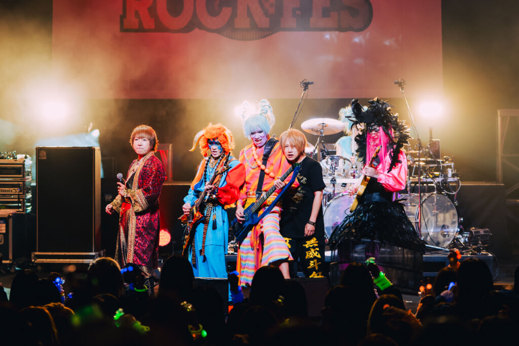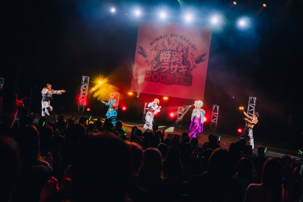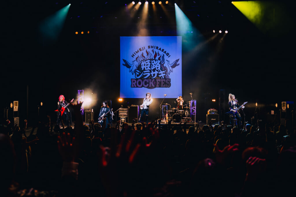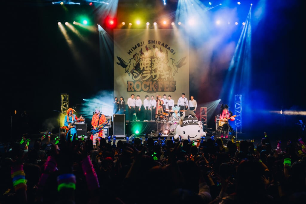 「the WORLD」「アルミナ」「レゾンデートル」と、アニメのタイアップで広く知られた曲を立て続けに投下。これで盛り上がらないはずはない。数々のヒット曲を持っているのは、もちろん第一線で活躍してきた証だが、それ以上に演奏やステージング、見せ方など、どこをとっても完成度が高く、その実力の確かさを感じた。「惰性ブギー」では、特攻服姿のLida (Psycho le Cému)が参加し、お立ち台で咲人と並んでプレイする貴重な姿も。実は、姫路でのライヴは長いバンド活動のなかでも初めてだとか。こういったことが、姫路でフェスを開催する意義のひとつになるに違いない。