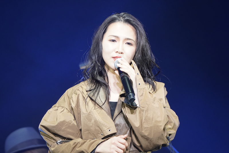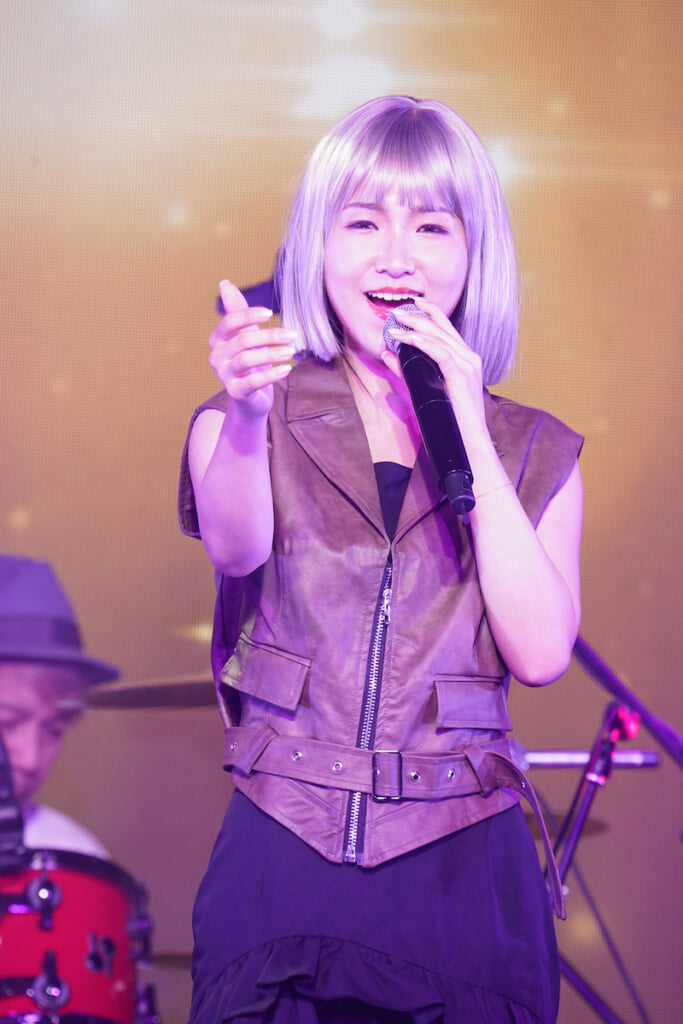 ステージの幕開けは、銀色のウィッグにサングラスをつけた田中あいみが歌手の歌田雛芽とともに登場。1曲目「jungle STAR」で、力強くも艶やかな歌声で一気に観客を引き込み、その存在感を見せつける。