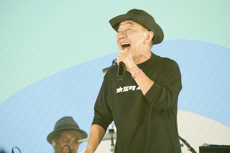 歌唱終わりのMCでは、今週土曜日に大分で開催するジゴロックフェスの練習がしたいと話す木梨憲武。「おじさんメドレーの曲に付き合いなさい」と宣言した木梨憲武が会場を笑いに誘ったことが合図のように木梨憲武メドレーが始まる。手拍子と歓声が上がり、会場が活気に包まれた。まさにジャンルの垣根を越えたコラボレーションが実現した。