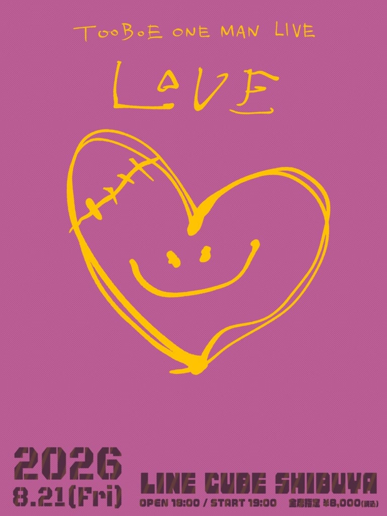 4月14日よりスタートした本ツアーは、全国4都市を巡り各地で熱狂を巻き起こしてきた。新たに発表された<ONE MAN LIVE 2026 “LOVE”>は、TOOBOEにとってさらなるステージへの進化を示す公演となる見込みだという。