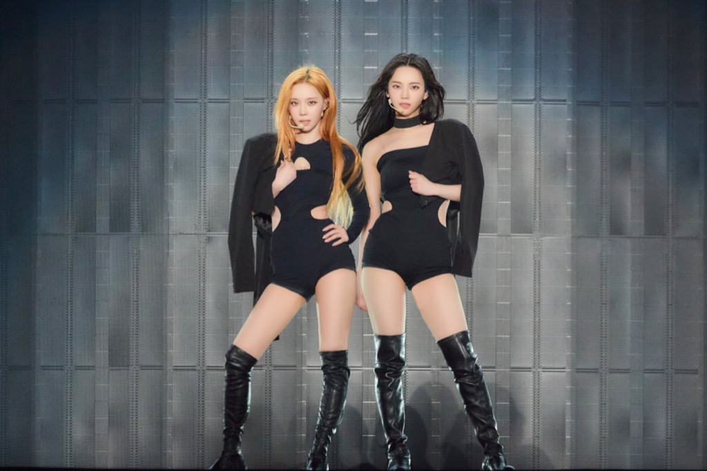 2曲目はこのドームツアーが初パフォーマンスとなる、アニメ『キルアオ』オープニングテーマ曲となっている日本の新曲「ATTITUDE」。“自分を定義するのは自分”という彼女たちの世界観と地続きの、強気で自信に満ちたメッセージと、エネルギッシュなサウンド、そして手で“銃”の形を作るキャッチーなダンスが印象的な曲だ。オープニングから3曲目の「Kill It」までは、ミドルテンポの楽曲で固めた。