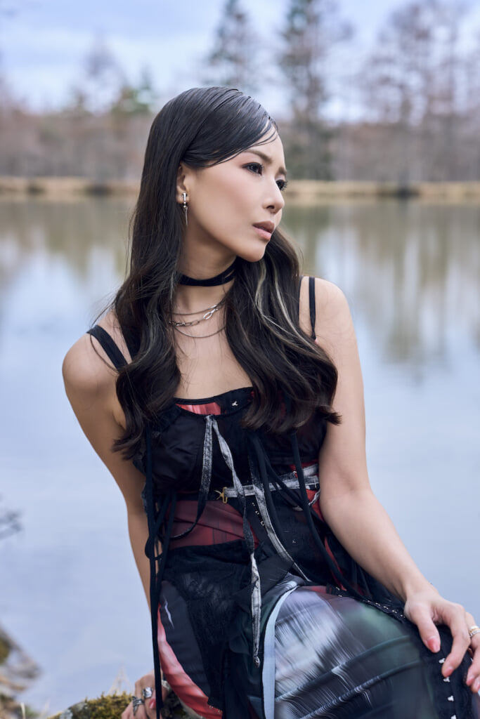 そんなギタリストのSAKIの新アーティスト写真は、ラテン語で雨を意味するPLUVIAという名前の通り、静かな水辺を背景に、雨が降り注ぎ花がゆっくりと開いていくような情景を想起させる仕上がりとなっており、アルバムに流れる叙情的で内省的な世界観を象徴している。これまでのSAKIは、白や黒といったコントラストの強いカラーが印象的だったが、本作では落ち着きと深みのあるカラーで、新たな表現領域への広がりを感じさせるビジュアルとなっている。