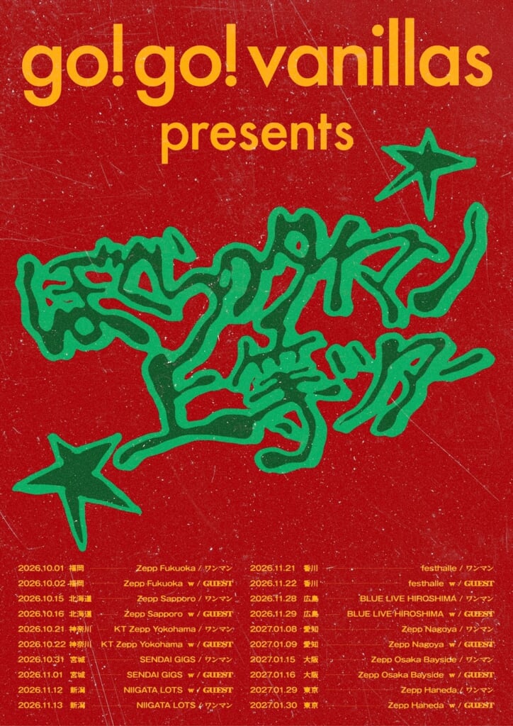 そして、7月には初のアジアツアー<go!go!vanillas Asia Tour 2026>の開催も決定している。本ツアーは、7月10日に台湾・THE WALL LIVE HOUSE、7月12日に韓国・YES24 LIVE HALLにて行われる。