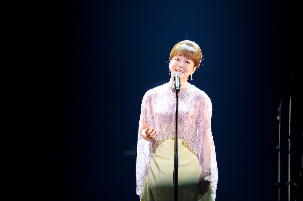 その後は一転、歌手としての転機となったバラード曲「思秋期」を円熟の域に達したボーカルで披露。あらためての謝辞と、今後の活動への意欲を述べたあと、代表曲「聖母たちのララバイ」で本編を終了した。
