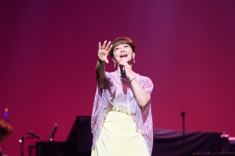 曲間のMCでは楽曲にまつわる想い出や、近況についてもコメント。ざっくばらんなトークで会場を笑いで包む。そして1981年の日本レコード大賞で最優秀歌唱賞を受賞した「すみれ色の涙」で満場を魅了したのち、最新曲「永遠のありがとう」で第1部を締めくくった。