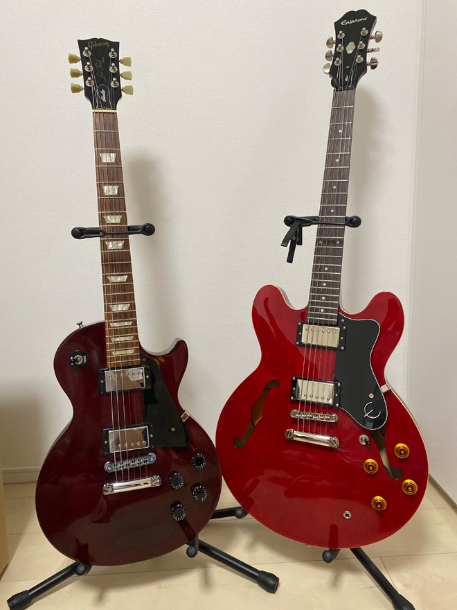 不思議ですね、赤色は特別好きな色ではないのに、何故か買うギターは赤ばかり。そんな赤色の子達を眺めながらの赤ワインは格別ですね。この子で腕を磨き、いつかは本家の335を手に入れ、さらに格別なワインをと、妄想しながら仕事へのモチベーションを上げている今日この頃です。