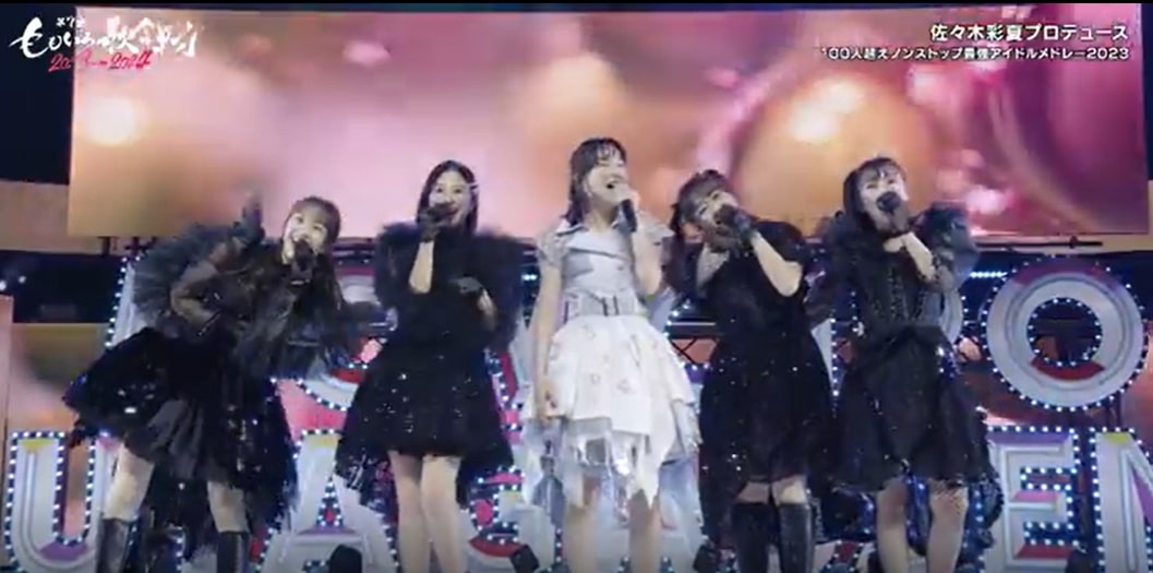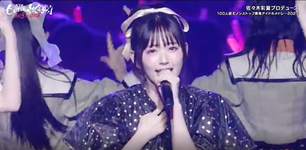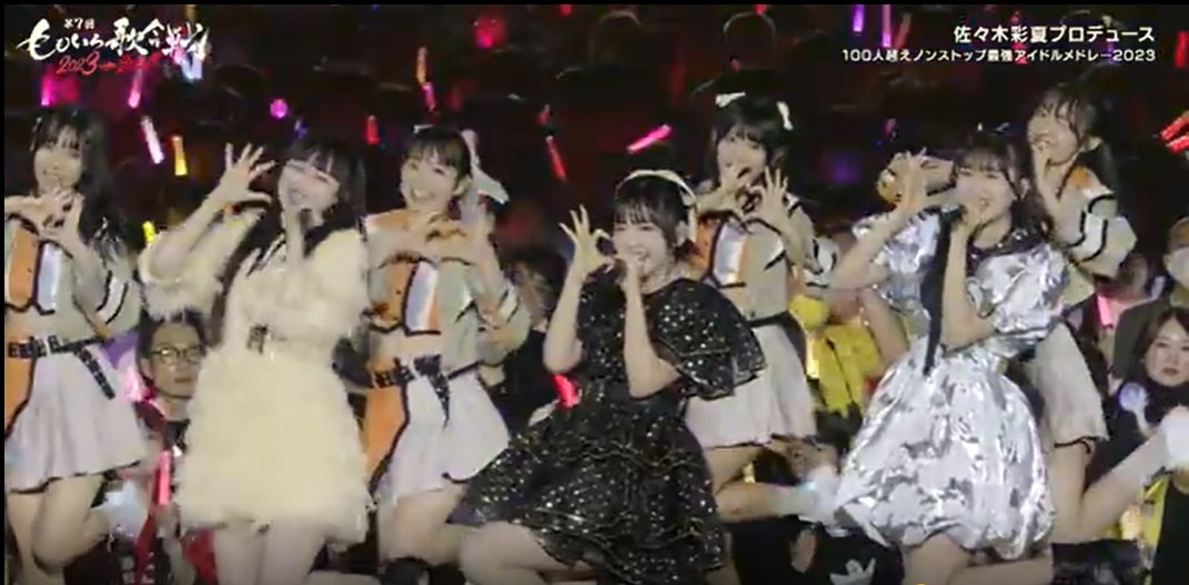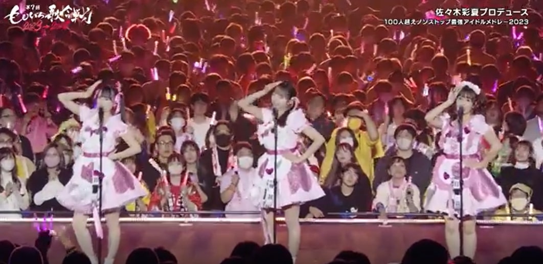 『ももいろ歌合戦』史上最多となる総勢100名を超える人気アイドルたちが集結した『佐々木彩夏プロデュース 100人超え ノンストップ最強アイドルメドレー2023』では、情報解禁直後にSNSで大きな話題を呼んだ「ハート型ウイルス」(AKB48 チーム A)を、佐々木彩夏と乃木坂46の元メンバーの新内眞衣、≠MEの鈴木瞳美が生披露。現役アイドルである佐々木、鈴木と、乃木坂46を卒業した新内の夢のコラボに、SNSでは「これぞ絶対アイドル」「天才すぎる」「豪華すぎて震えた」など歓喜の声が多数寄せられた。