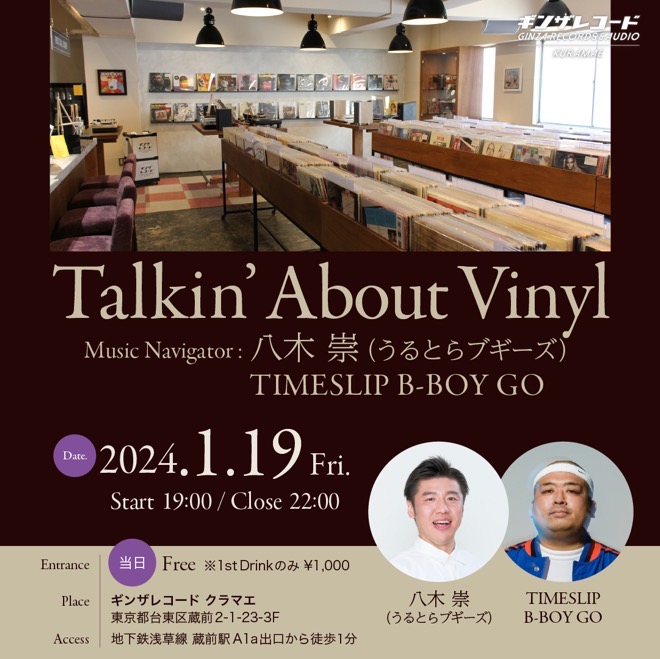 GINZA RECORDS & AUDIO KURAMAE、八木崇とTIMESLIP B-BOY GOを招いて<Talkin’ About Vinyl>開催