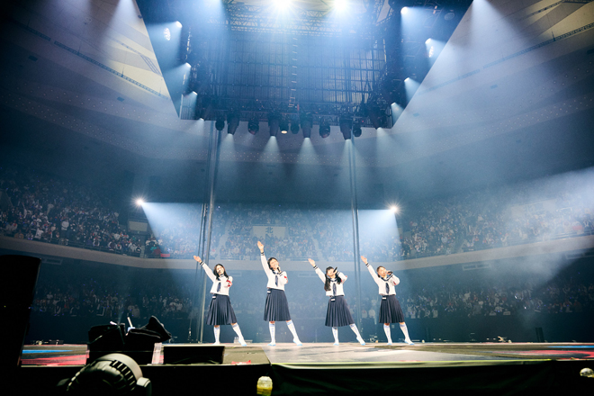 360度を観客に囲まれたセンターステージに「Tokyo Calling」のイントロが流れると、会場に集まった12000人のファンは早くもテンションMAXに。ステージを覆っていたLEDの上昇と共にメンバーが上下赤のセーラー服姿で登場すると割れんばかりの歓声が日本武道館に響いた。ライブ序盤から、この日が初解禁となる「Toryanse」のほか「Pineapple Kryptonite Remix」を披露すると、メンバーはMCで「360度新しい学校のリーダーズのファン、見てるか!」「由緒正しいこの場所に4人だけで立つ日を待ち望んでいました」と、ファンへ呼びかけると共に感謝を伝えた。