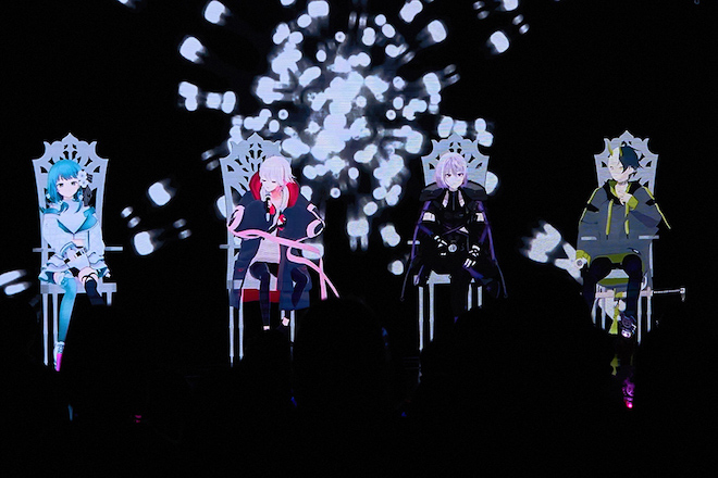 大きく動くパフォーマンスから一転して、3曲目は静のターン。椅子に座った4人がステージ上に現れるやいなや、客席からは黄色い声があがっていた。歌うのは「フィクサー」。やはり始動前に投稿された1曲であり、しかもその動画のビジュアルそのままの座り方で4人が登場したとなれば、当然の反応だろう。
