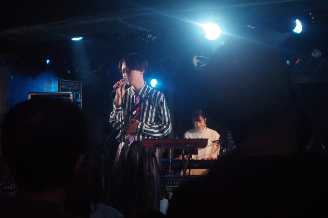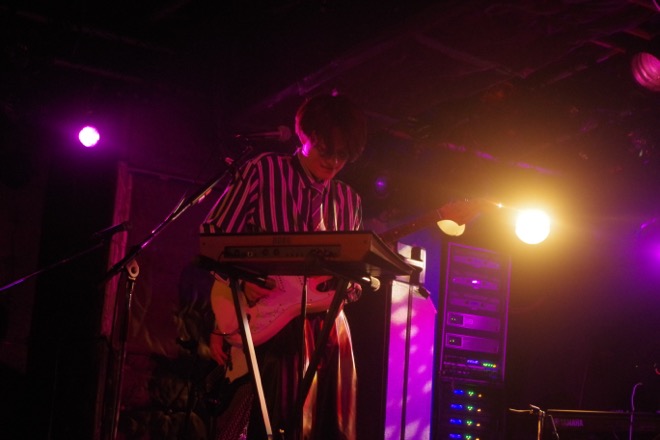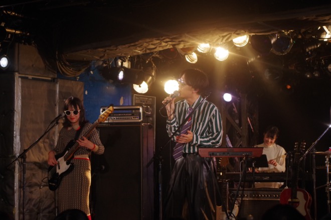 最新シングル「夜明けの列車に飛び乗って」ではこの季節にぴったりの冬の空気をまとったアンサンブルが響き、ライブは一気に終盤へ加速。夏の歌謡曲「人魚の鱗」、ファンタジーとサイケの入り交ざる「FANTASY」、杉山清貴&オメガトライブのカヴァー「SUMMER SUSPICION」と畳み掛け、ラストはダンス&ソウルナンバー「サイレンスで踊りたい」で新宿LOFTがダンスフロアに変貌。フロアのステップと手拍子がバンドアンサンブルとのハーモニーを奏で、この日最高の盛り上がりとなった。