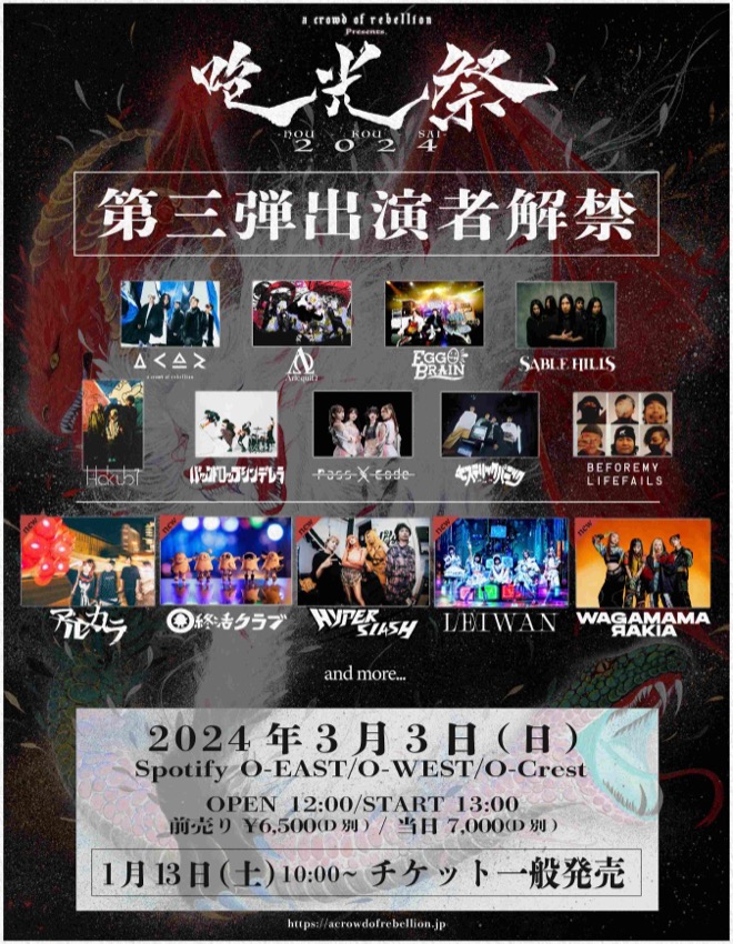 a crowd of rebellionが主催するサーキットイベント<“咆光祭”2024>(読み:ホウコウサイ)の第三弾出演者が発表された。