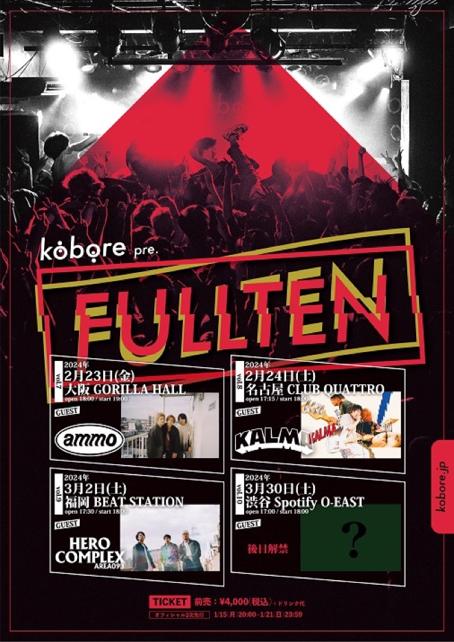 また、5ヶ月間連続で東京・府中Flightにて開催されたマンスリー対バン企画<kobore pre. 『FULLTEN』>が、パワーアップして2024年2月23日の大阪・GORILLA HALL OSAKAを皮切りに東名阪福で開催される。