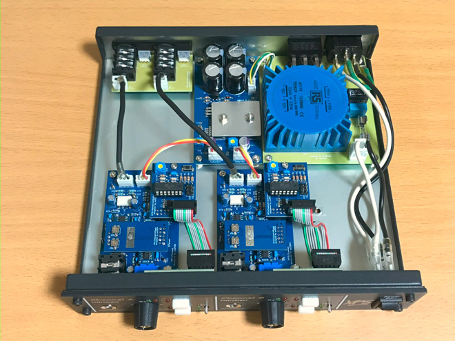 エフェクタやアンプを自作される方はたくさんいらっしゃると思いますが、高いハードルのひとつが丈夫で見栄えのする筐体だと思います。私はCADで図面を書き、ケースメーカーさんの加工サービスにお願いしました。アルミパネルのインクジェット多色印刷も利用できます。その他、基板は深圳のプリント基板製造サービス、電子パーツは通販で揃いました。便利な時代です。