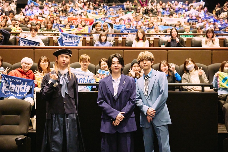 この日の舞台挨拶付き特別上映イベントは『DOME LIVE 2023 “Atlantis”』に収録された埼玉・ベルーナドーム2日目のライブ本編をノーカットで、映画館の大スクリーンで上映。その後、東京・TOHOシネマズ 六本木ヒルズではMrs. GREEN APPLEのメンバー3人が登壇して舞台挨拶を行った。その模様は全国86館の映画館に生中継された。