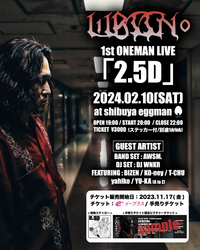 LIL’BCCNoは2月10日、shibuya eggmanにてワンマンライブ<LIL’BCCNo 1st ONEMAN LIVE「2.5D」>を開催する。同公演にはAWSM.、DJ WNKR、BIZEN、KO-ney、T-CHU、yahiko、YU-KAも参加するとのこと。