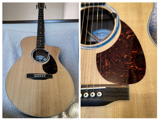 斉藤誠様の「MARTIN TIMES」チャンネルに影響され、あの病を発病。O-18を購入。指先が太い私には少々フレットが狭く、そこに同チャンネルでSC-13E視聴。後付けのような理由でDr.サウンドにて「表板が柾目のSC-13E」を注文購入。
