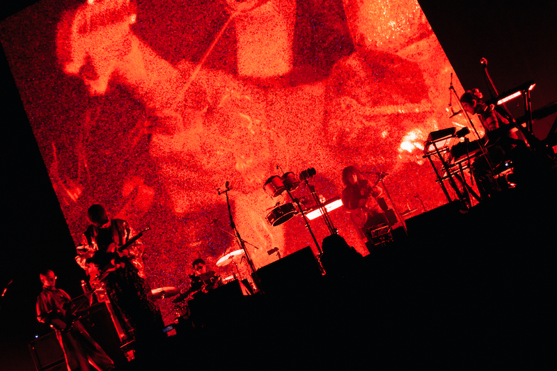 ハプニングとして会場を沸かせたのが、Hasebeによるセットリストのミスだ。これによって、本来は15曲目として演奏されるはずだった「Astral Sonar」が11曲目に来てしまった。この規模になると裏方に徹する人間(たとえばPAや照明)の数も甚大なので、たとえオーディエンスが気付かなくとも曲順が変わったことを全員に知らせねばならない。Kroiの面々はユーモアを交えながらこの場を切り抜けると、演目は“チルな”セクションへと移行する。