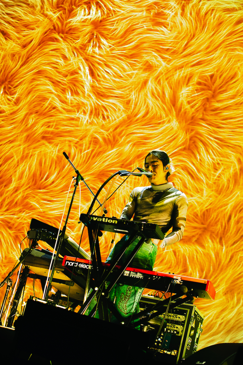 その頃から定番の「Fire Brain」は今回の武道館公演でも披露されたが、明らかに「含み」があった。これは筆者の実体験がもとになっているので、調べると例外があるのかもしれないけれど、2019年のサマーソニックから今日に至るまで、Kroiのライブではこの「Fire Brain」はラスト、もしくはアンコールを飾る楽曲だった。少なくとも、上で挙げた3つのワンマン公演では必ずこの曲が最終盤のKroiをブーストしていた。それは<GREENROOM FESTIVAL’23>や、スケールを2回り以上大きくして凱旋した<SUMMER SONIC 2023>(東京会場)でも同様である。