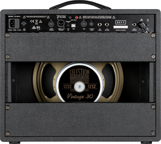 D25 Comboはペダルでの音づくりに最適な、素直なクリーン~クランチ・サウンドが得られるように設計。スピーカーは、セレッションのヴィンテージ30(12インチ)を1基搭載し、このクラスのコンボ・アンプとして重量約15kgとライト・ウェイト。フロント・パネルにはゲイン、トレブル、ミドル、ベース、ヴォリューム、リヴァーブと非常にわかりやすいシンプルなコントロールを配置しており、使用場面において簡単に25W/5Wの出力切替えが可能なスイッチを装備。また、背面にはエフェクト・ループも装備。