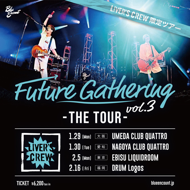 1月29日の大阪CLUB QUATTRO公演を皮切りにファンクラブツアー<Future Gathering Vol.3>が開幕し、BLUE ENCOUNTが10周年イヤーをスタートさせた。