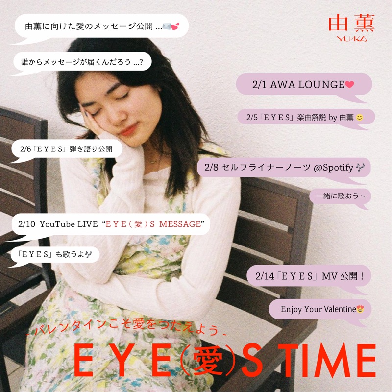 バレンタインデーに向けて今後、AWAで開催予定のLove Songリスニングパーティー、由薫本人の楽曲解説動画、セルフライナーノーツ公開など、由薫から愛を伝える様々なコンテンツがオフィシャルサイトやオフィシャルYouTubeチャンネル 、公式SNSに連日公開されていくとのこと。また、2月14日のバレンタインデー当日には「E Y E S」のビデオも公開される予定だ。