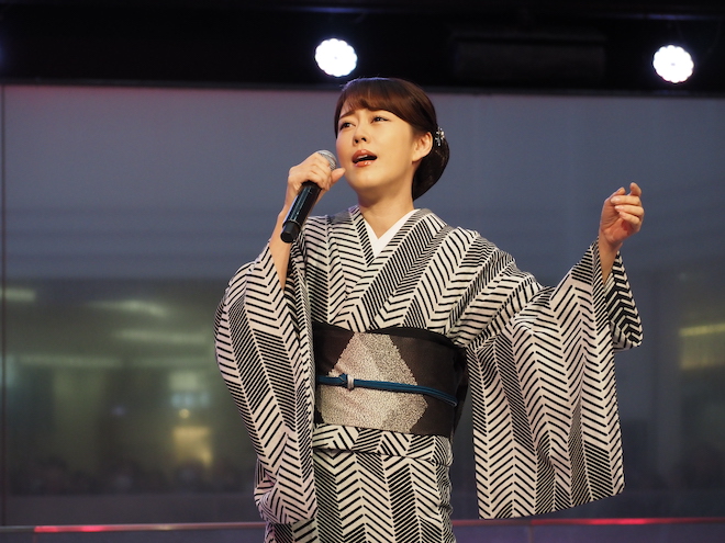 この日は【CD+DVD】盤のジャケット写真に使用されている白と黒を基調とした上品な着物を身に纏い、ファンの前に登場。2017年『NHK紅白歌合戦』に初出場した「佐渡の夕笛」を歌い上げた後、「『涙唄』発売記念イベントにお越しいただきありがとうございます。昨日から雪が降って大変でしたよね。X(旧Twitter)でみなさんのメッセージを見ていたのですが、会いに来て良かったと思ってもらえるように頑張ります」とコメント。