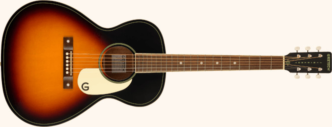 1930年代、40年代、50年代に販売された歴史的なGretsch “Rex”アコースティックギターからインスパイアされたJim Dandyモデルは、Gretsch初期のフラットトップギターの魅力とスピリットを体現し、優れた演奏性とクラス最高級のトーンを備える。快適でコンパクトなコンサートボディと24.75インチスケールの「Jim Dandy Concert」は、あらゆる音楽スタイルに対応する柔軟なトーン。Xブレーシングを施したボディには厳選された軽量ラミネート材を使用し、ウッディなヴィンテージトーンと耐久性を最適なバランスで実現。“C”シェイプネックは長時間の演奏でも快適な演奏性を維持。ヴィンテージスタイルのピンブリッジ、“G”グラフィック入りピックガード、ペイントされたピンストライプパーフリング、“3-on-a-plate”オープンギアチューニングマシン、オーバーサイズドットインレイなど、当時の仕様に忠実なディテールがノスタルジックな個性を醸し出す。「Jim Dandy Concert」は、初心者からベテランまで、自宅やカフェなど、あらゆるシーンとプレイヤーに応えるギター。