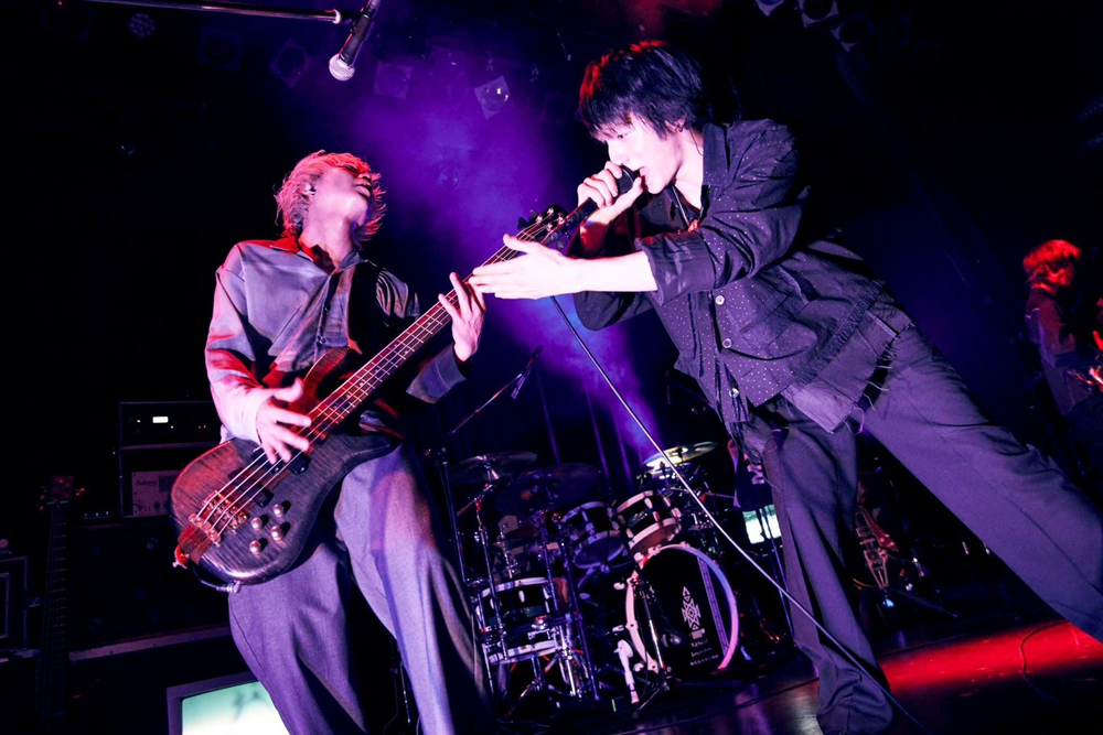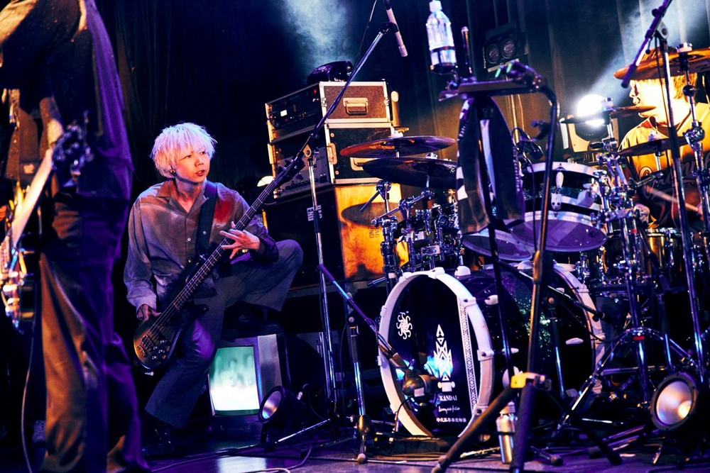 「伝説の1日にしていこうぜ!」(片桐)── そこから観客がヘッドバンギングで応えたラウドロックの「脳内」、ファンキーなダンスロック・ナンバー「Psycho」と繋げ、あっという間にスタンディングのフロアを1つにしていったステージの4人の箍はすっかり外れてしまったようだ。さらにアンセミックな「Make my story」、そこからノワールな魅力もあるタフなロックナンバー「DURARA」とたたみかける勢いは、まさに怒涛の一言。そして、「まだまだ行ける!かかってこいよ!」と片桐が吠え、ソラが閃かせたエキゾチックなイントロからなだれ込んだ「Enter the Void」ではKazuのスラップ奏法とKANDAIの力強いキックに煽られるように観客全員がジャンプ。その光景を見たKazuは高々とベースを頭上に掲げ、早くも勝利宣言。