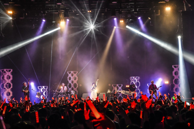 「『このCD初めて買ったんだよなあ』『このときのリリイベ楽しかったんだよなあ』と、皆さんの歩みと私の歩みを重ねあわせて聴いてくれたら嬉しいです!」ということばの後に演奏されたのは、これまで7枚リリースされたアニメタイアップシングル曲を詰めこんだ“7周年メドレー”だ。