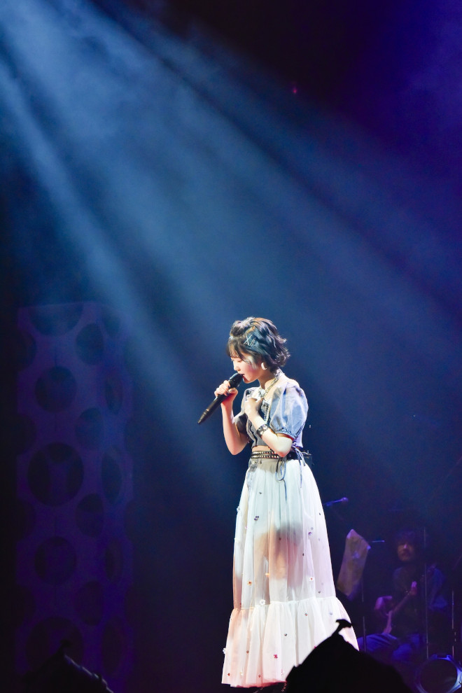 リクエストパートでは、2018年の「東山奈央 1st LIVE“Rainbow”at 日本武道館」以来となる、「星ノ標」がセットリスト入り。投票で2位にランクインし、夜の部にこそ似合うと思ったという貴重な一曲は、つま弾くギターのサウンドが星の瞬きのようにしみいるラブソングに仕上げられていた。東山自身、自身の成長を最も感じられる、そんな楽曲のひとつだという。