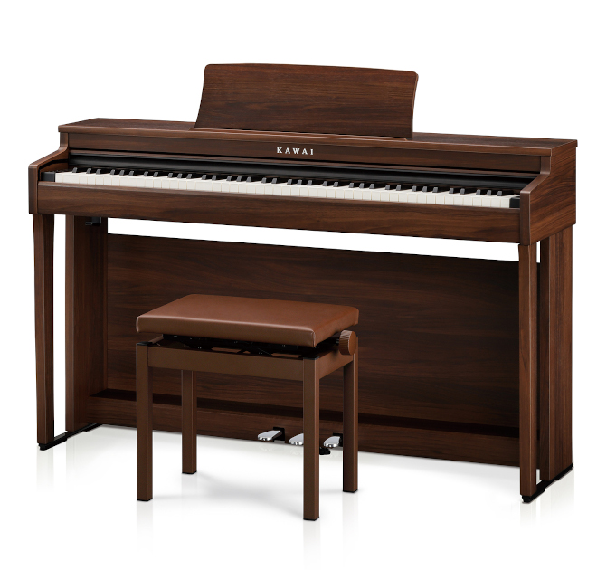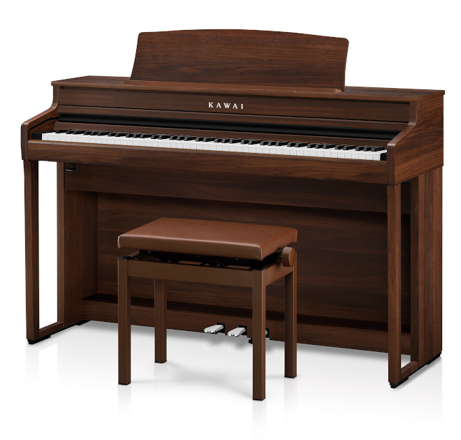 カワイが、インテリア性の高い木目調“ナチュラルウォルナット調仕上げ”の『CA701NW』と、新色“モカウォルナット調仕上げ”の『CA401MW』『CN201MW』をラインナップに追加し、3月15日より発売する。
