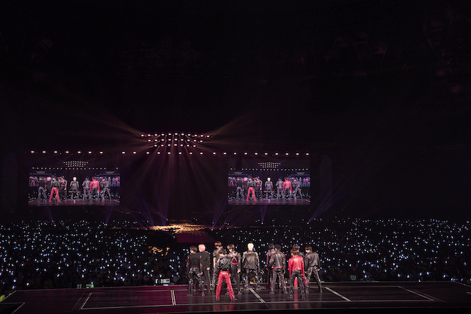 その後、「Runaway」「STRIDE」では観客全員と合唱する場面や、しっとりとハーモニーを奏でる「Mirror」を歌い上げると会場からは拍手が沸き起こり、一体感が増していく。5thシングルのタイトル曲「HANA_花」では、ステージの大きな LEDだけでなくメンバーが立つセンターステージの足元にも花が映し出され、まるで花畑の中で歌っているかのようなステージに。