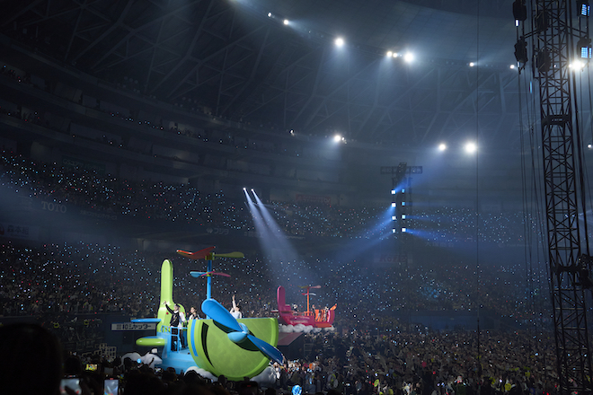 本編終了後、アンコールでは飛行船モチーフのフロートに乗って登場したメンバー。スタンド席の観客とも目線を合わせながら、「AMAZE ME」「HERO」に加え、INIが結成されたオーディション番組「PRODUCE 101 JAPAN SEASON2」でのテーマ曲「Let Me Fly」を披露すると、グループ結成時から今までを振り返るようなエモーショナルな雰囲気に包まれていく。