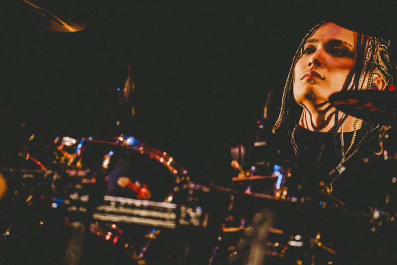 ツアー全体を通して、セットリストは『The Heart Tree』収録曲中心だが、アルバムの曲順をほとんど崩さず、間に既存曲を差し込む形で展開してきた。この日も、『The Heart Tree』の1曲目「Hopeless」からスタート。メジャー一発目とは思えないダークなこの曲こそ、希望と絶望を不安定に行き来するDEZERTのライヴの幕開けに相応しい音楽ではないだろうか。Miyako (G)の放つ歪んだ音が満員のフロアに響き渡り、千秋が「行こうか、東京!」と煽ると、観客は歓声と拳で応え、SORA (Dr)が全身全霊でドラムを叩きつけると、Sacchan (B)のヘヴィなベースの音に合わせて一心不乱に頭を振る。