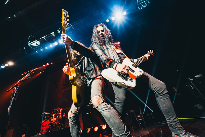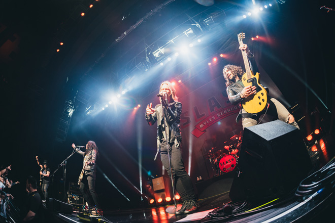 スラッシュfeat.マイルス・ケネディ&ザ・コンスピレイターズが、約5年ぶりとなるジャパン・ツアーを実施中だ。そのツアー初日となった3月2日、大阪・なんばHatchでの公演時の写真が到着。そこに収められたメンバーたちの表情からも、バンドが現在とても良好な状態にあり、同公演自体も盛況に終わったことがうかがえる。そして3月4日、彼らは東京公演の第一夜を迎えた。会場はZepp DiverCity Tokyo。このバンドにとっては初めての場所、ということになる。