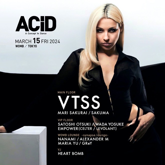 ペギー・グーをはじめとするビッグネームのクラブイベントを成功させてきたテクノパーティ<ACiD: A Concept in Dance>が、2024年3月15日(金)に渋谷WOMBで再び開催、今年の<Tomorrowland>出演もアナウンスされたVTSSが、来週金曜に初来日することは既報通りだ。