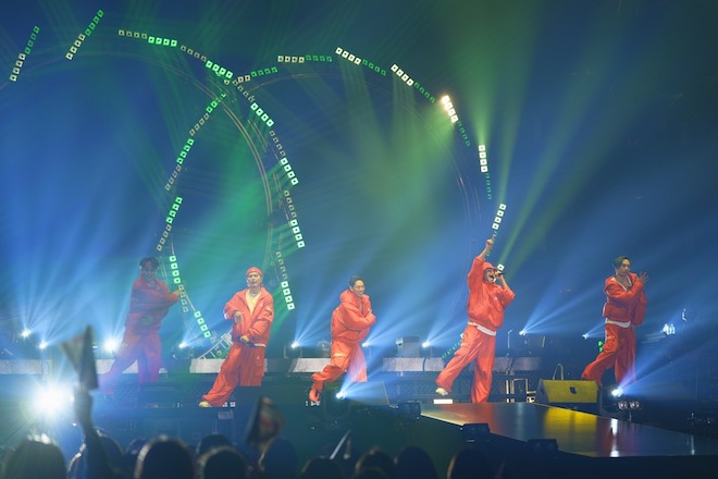 ライブ後半は、EXILEのヒットナンバー「Choo Choo TRAIN」〜「Everything」〜「Someday」のメドレーから。メンバーが会場内を練り歩き、近い距離でファンと交流しながら盛り上げていく。事前の取材でメンバーも口々に語っていたが、アリーナは実際にショーが始まると客席との距離をとても近く感じるそうで、「ファンの皆さん参加型のライブを目指しているからこそ、そういうセクションを作っている。触れ合えるくらいの距離でライブの楽しさを感じてもらいたい」(NESMITH)という思いからの演出のようだ。ライブならではのアッパーなナンバーが続き、「Going Crazy」ではTHE JET BOY BANGERZと共にタイトル通り、この日最高潮の盛り上がりに。6年ぶりのアリーナではあるが、そんな時間を一瞬で飛び越えてしまうほどのエネルギーを生み出しながら本編はエンディングを迎えた。