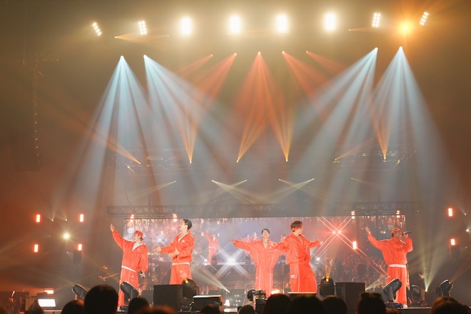 オープニングアクトとして登場したのは、EXILE AKIRAがプロデュースを手掛ける10人組ダンス&ボーカルグループ・THE JET BOY BANGERZ(この日は8名で参加)。昨年末のEXILE台湾公演に続き、このツアーにも帯同している彼らは、抜群のチームワークとダンススキルでオーディエンスを魅了。記念すべきデビュー曲「Jettin’」、最新EPの表題曲である「PHOTOGENIC」など4曲を披露した。