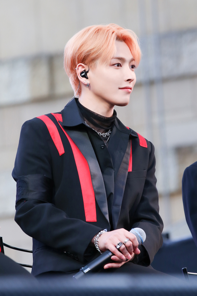 続いて「NOT OKAY」のMV撮影時のエピソードに話題が移ろうとした時、おもむろにMINGIが立ち上がり会場からは笑いが湧き起こる。「今日は本当に寒いですから」と素肌にジャケットという衣装の寒さに耐えかねたようで、「MINGIさん座ってください!」とSANにたしなめられる中、HONGJOONGは「ATINY寒くないですか? 大丈夫ですか?」と客席を気遣った。