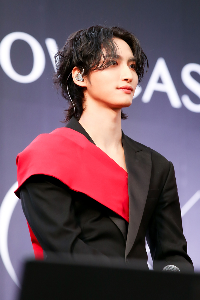 MCの呼び込みで8人が「NOT OKAY」のMVで纏っているのと同じ、黒と赤のシックな衣装で登場すると、客席からは寒さを忘れるような熱い歓声が上がる。「8 makes 1 team! こんにちは、ATEEZです!」とグループで挨拶をしてからメンバー一人ずつ自己紹介。フォトセッションを終えると、早速1曲目、「Days」のステージへ。シングル「NOT OKAY」に収録された日本オリジナル曲で、今日が初披露となるこの曲は、“大好きだ”という歌詞が印象的で、聴く人にそっと寄り添ってくれるような優しさを持つミディアムテンポのラブソング。スタンドマイクでメンバーそれぞれが客席のATINYと目を合わせたり、微笑みかけたりしながら歌う会場は多幸感に溢れ、まるで春のようなあたたかな空気に包まれた。