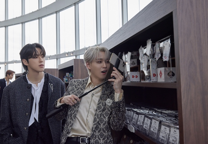 トランプになったJO1が飾られたメリーゴーランドが象徴的なこのエリアでは、白岩瑠姫が入るやいなや「景色よすぎ!」と感動。川尻は「夜景が絶対綺麗だから夜にも来たいな〜」とつぶやきいた。さらにここでは、壁にあるQRコードを読み込むと、メンバーそれぞれのボイスメッセージが。最初にこのQRに気づいた金城は、豆原一成のメッセージを聞きながらひとりで大爆笑。これを遠くから見ていた川西拓実は「やばいやつおる!」と思わずツッコミ。