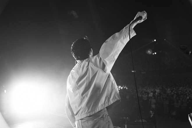 「最後に一曲、“この時代に飛び乗っていこうぜ!”ってことで。最後に1曲楽しもうぜ!」と、解き放たれたラストナンバーは重厚なビートでロックする「飛行艇」。でかい会場に似合う楽曲をと、生み出されたライブチューンだ。ステージではこれでもかと炎が噴射されていく。この瞬間がずっと続いてほしい、誰もが心の奥底から願ったことだろう。しかしながら、エンディングを迎えていくステージ。