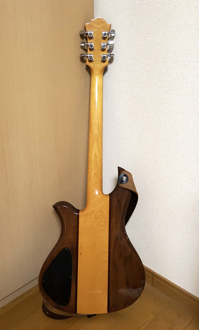 このイーグルも理想的なオーナーのもとに導かれたみたいですね。この頃のB.C.Richに最大の敬意を表するのであれば、そりゃスーパーディストーション(…てか正確にはデュアルサウンドだけど)を換装するのが正義というもの。わかっていらっしゃるぅ。私もこれがEG-Vなのかは分からないけど、「これぞイーグルなり」と言わんばかりの作りを見るに、ボディはコアなんじゃないかと思います。1970年代B.C.Richの基本構造は一部のマホボディを除きメイプルとコアが基本でしたから、他の材を使うなんて考えられん。硬質で抜けの良さ抜群のヘヴィーサウンドが出そうな気配がむんむん。要するに一言で言えば、名機っすね。(JMN統括編集長 烏丸)
