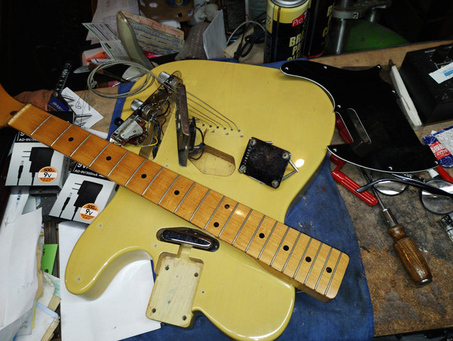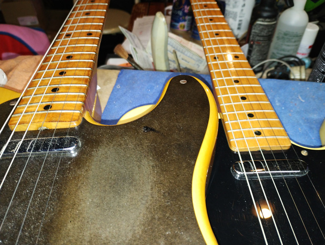 知り合いから譲り受けたの18年前、知合いが買ったのLAで、15年前、、、そんなテレちゃうギター、オークションに出します。その前にひと目見てやってくだされ〜\(^o^)/。